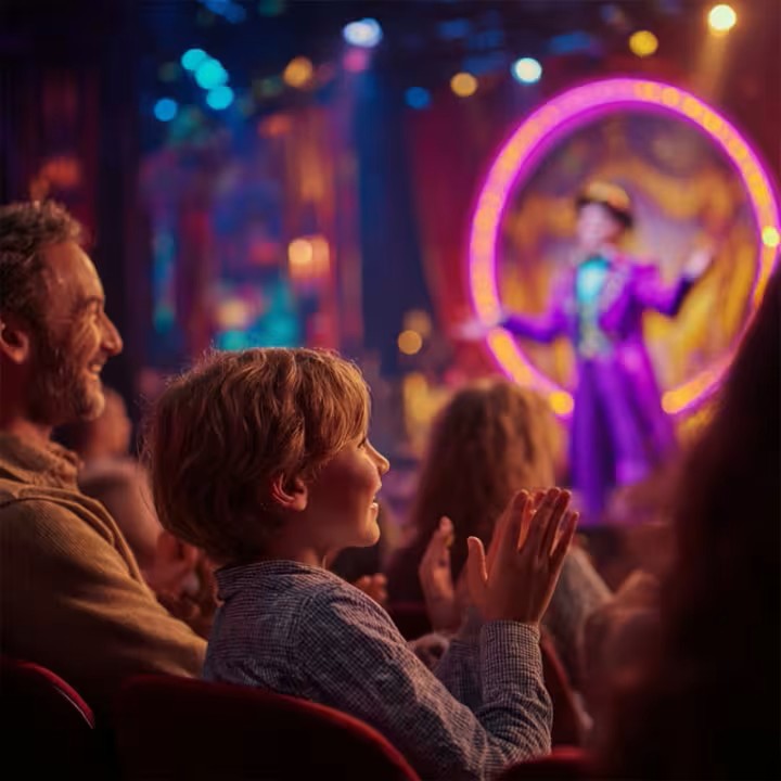 🌈 A vibrant neon portal sets the scene for a dazzling theatrical experience